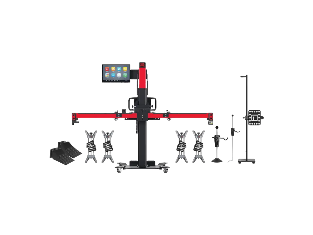 Includes the IA900WA unit with 3D camera, rim clamps, steering and brake locks, and the basic targets for standard ADAS calibrations and tire alignment.